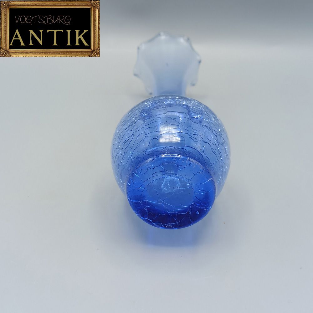 Blaue Glasvase, wohl aus den 70ger Jahren. Vasenbauch mit schönem Krakelee.